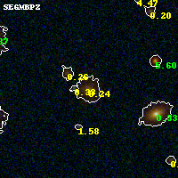 Object #56 x,y = (2791, 3336) RA, Dec = (09:49:51.576, 17:08:11.40) = (147.46490, 17.13650) BPZ = 0.239 [0.169--0.296] type = 3.00 (Ell5_A_0) chisq2 = 0.10 ODDS = 0.87 z_cluster = 0.383