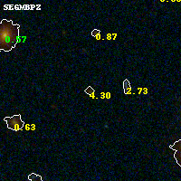 Object #589 x,y = (2036, 2208) RA, Dec = (09:49:54.720, 17:07:03.72) = (147.47800, 17.11770) BPZ = 4.301 [0.243--4.569] type = 8.30 (SB1_B10 - SB2_B10) chisq2 = 0.36 ODDS = 0.65 z_cluster = 0.383