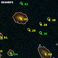 Object #597 x,y = (3318, 2200) RA, Dec = (09:49:49.368, 17:07:03.36) = (147.45570, 17.11760) BPZ = 4.289 [0.479--4.583] type = 9.30 (SB2_B10 - SB3_B10) chisq2 = 0.26 ODDS = 0.43 z_cluster = 0.383