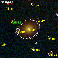Object #604 x,y = (2399, 2162) RA, Dec = (09:49:53.208, 17:07:01.20) = (147.47170, 17.11700) BPZ = 0.421 [0.341--0.452] type = 3.00 (Ell5_A_0) chisq2 = 0.07 ODDS = 0.89 z_cluster = 0.383