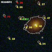 Object #649 x,y = (2361, 2157) RA, Dec = (09:49:53.376, 17:07:00.84) = (147.47240, 17.11690) BPZ = 0.988 [0.203--1.097] type = 8.40 (SB1_B10 - SB2_B10) chisq2 = 0.17 ODDS = 0.50 z_cluster = 0.383