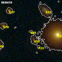 Object #688 x,y = (3325, 2052) RA, Dec = (09:49:49.320, 17:06:54.36) = (147.45550, 17.11510) BPZ = 1.210 [0.232--1.971] type = 8.60 (SB2_B10 - SB1_B10) chisq2 = 0.88 ODDS = 0.21 z_cluster = 0.383