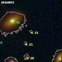 Object #69 x,y = (3353, 3279) RA, Dec = (09:49:49.224, 17:08:08.16) = (147.45510, 17.13560) BPZ = 4.306 [0.165--4.764] type = 8.80 (SB2_B10 - SB1_B10) chisq2 = 0.40 ODDS = 0.40 z_cluster = 0.383