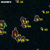 Object #700 x,y = (3627, 2007) RA, Dec = (09:49:48.072, 17:06:51.84) = (147.45030, 17.11440) BPZ = 0.663 [0.155--0.788] type = 7.80 (SB1_B10 - Scd_B10) chisq2 = 0.14 ODDS = 0.66 z_cluster = 0.383