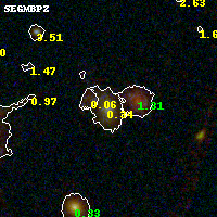 Object #722 x,y = (4034, 1985) RA, Dec = (09:49:46.368, 17:06:50.40) = (147.44320, 17.11400) BPZ = 0.341 [0.217--0.424] type = 8.10 (SB1_B10 - SB2_B10) chisq2 = 0.06 ODDS = 0.65 z_cluster = 0.383