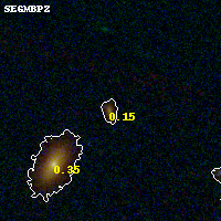 Object #77 x,y = (3495, 3241) RA, Dec = (09:49:48.624, 17:08:06.00) = (147.45260, 17.13500) BPZ = 0.155 [0.076--0.776] type = 3.60 (Ell4_A_0 - Ell5_A_0) chisq2 = 0.19 ODDS = 0.64 z_cluster = 0.383
