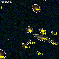 Object #803 x,y = (2354, 1816) RA, Dec = (09:49:53.400, 17:06:40.32) = (147.47250, 17.11120) BPZ = 0.258 [0.212--0.416] type = 8.20 (SB1_B10 - SB2_B10) chisq2 = 0.04 ODDS = 0.68 z_cluster = 0.383