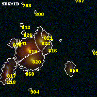 Object #816 x,y = (3526, 1752) RA, Dec = (09:49:48.480, 17:06:36.36) = (147.45200, 17.11010) BPZ = 0.349 [0.054--0.613] type = 7.20 (Scd_B10 - SB1_B10) chisq2 = 0.08 ODDS = 0.32 z_cluster = 0.383