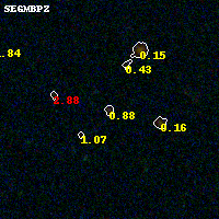 Object #828 x,y = (3766, 1778) RA, Dec = (09:49:47.496, 17:06:38.16) = (147.44790, 17.11060) BPZ = 0.876 [0.115--4.453] type = 8.70 (SB2_B10 - SB1_B10) chisq2 = 0.85 ODDS = 0.35 z_cluster = 0.383