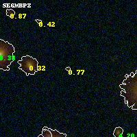 Object #836 x,y = (2655, 1771) RA, Dec = (09:49:52.128, 17:06:37.80) = (147.46720, 17.11050) BPZ = 0.765 [0.518--6.083] type = 3.00 (Ell5_A_0) chisq2 = 0.61 ODDS = 0.19 z_cluster = 0.383