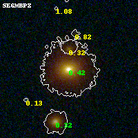 Object #878 x,y = (3053, 1632) RA, Dec = (09:49:50.472, 17:06:29.16) = (147.46030, 17.10810) BPZ = 0.420 [0.377--0.475] type = 1.70 (Ell6_A_0 - Ell7_A_0) chisq2 = 0.10 ODDS = 0.98 z_cluster = 0.383