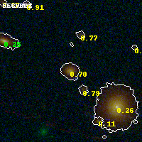 Object #918 x,y = (2367, 1579) RA, Dec = (09:49:53.328, 17:06:25.92) = (147.47220, 17.10720) BPZ = 0.703 [0.612--0.799] type = 7.50 (SB1_B10 - Scd_B10) chisq2 = 0.06 ODDS = 0.86 z_cluster = 0.383