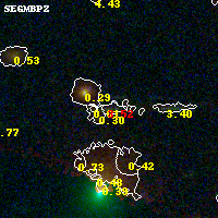 Object #960 x,y = (2815, 1426) RA, Dec = (09:49:51.456, 17:06:16.92) = (147.46440, 17.10470) BPZ = 3.521 [3.363--4.048] type = 9.60 (SB3_B10 - SB2_B10) chisq2 = 1.52 ODDS = 0.51 z_cluster = 0.383