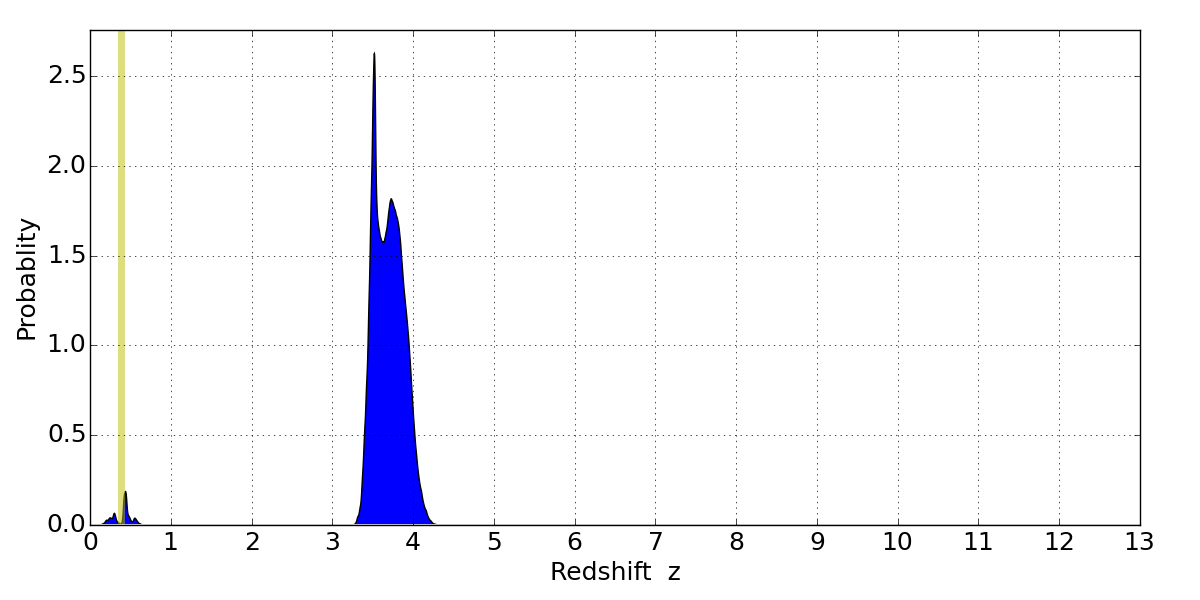 Best viewed in a wide browser window (1200 pixels or more). Download SED & P(z) plots to view larger versions.