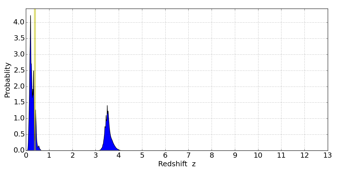Best viewed in a wide browser window (1200 pixels or more). Download SED & P(z) plots to view larger versions.