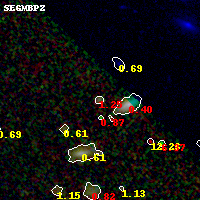 Black segments are analyzed here. Roll mouse over color images to view segments. Best viewed in a wide browser window (1200 pixels or more). Download SED & P(z) plots to view larger versions.