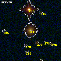 Black segments are analyzed here. Roll mouse over color images to view segments. Best viewed in a wide browser window (1200 pixels or more). Download SED & P(z) plots to view larger versions.