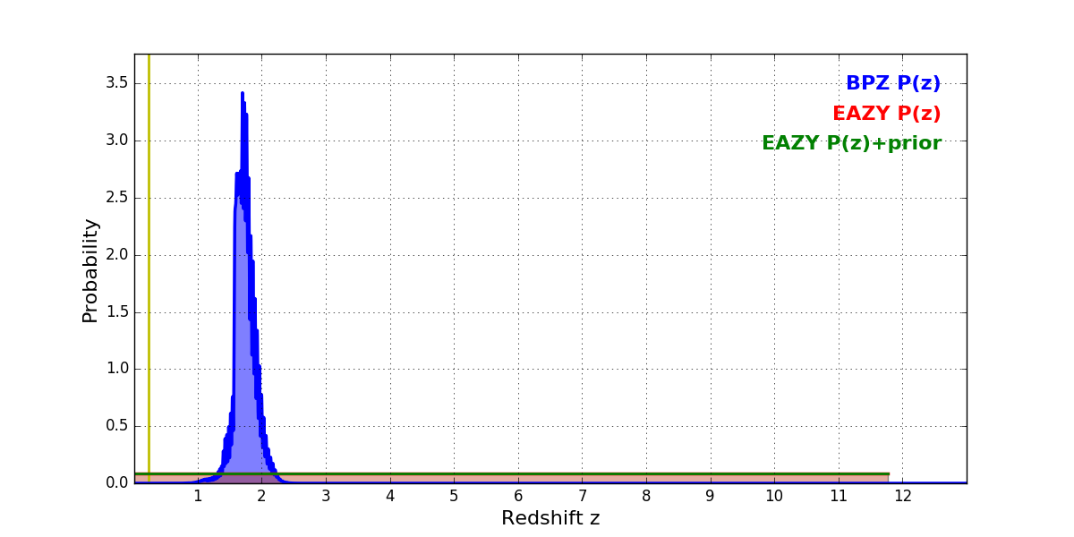 In P(z) plots: Yellow lines mark the cluster redshift z = 0.228,