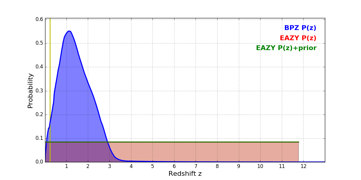 In P(z) plots: Yellow lines mark the cluster redshift z = 0.228,