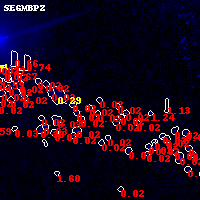 Black segments are analyzed here. Roll mouse over color images to view segments. Best viewed in a wide browser window (1200 pixels or more). Download SED & P(z) plots to view larger versions.