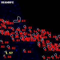 Black segments are analyzed here. Roll mouse over color images to view segments. Best viewed in a wide browser window (1200 pixels or more). Download SED & P(z) plots to view larger versions.