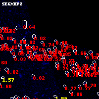 Black segments are analyzed here. Roll mouse over color images to view segments. Best viewed in a wide browser window (1200 pixels or more). Download SED & P(z) plots to view larger versions.