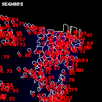 Black segments are analyzed here. Roll mouse over color images to view segments. Best viewed in a wide browser window (1200 pixels or more). Download SED & P(z) plots to view larger versions.