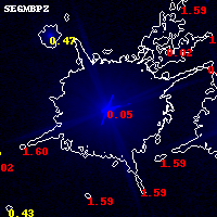 Black segments are analyzed here. Roll mouse over color images to view segments. Best viewed in a wide browser window (1200 pixels or more). Download SED & P(z) plots to view larger versions.