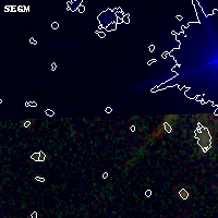 Black segments are analyzed here. Roll mouse over color images to view segments. Best viewed in a wide browser window (1200 pixels or more). Download SED & P(z) plots to view larger versions.