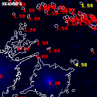 Black segments are analyzed here. Roll mouse over color images to view segments. Best viewed in a wide browser window (1200 pixels or more). Download SED & P(z) plots to view larger versions.