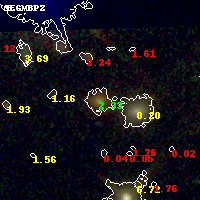 Black segments are analyzed here. Roll mouse over color images to view segments. Best viewed in a wide browser window (1200 pixels or more). Download SED & P(z) plots to view larger versions.