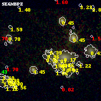 Black segments are analyzed here. Roll mouse over color images to view segments. Best viewed in a wide browser window (1200 pixels or more). Download SED & P(z) plots to view larger versions.
