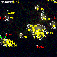 Black segments are analyzed here. Roll mouse over color images to view segments. Best viewed in a wide browser window (1200 pixels or more). Download SED & P(z) plots to view larger versions.