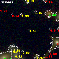 Black segments are analyzed here. Roll mouse over color images to view segments. Best viewed in a wide browser window (1200 pixels or more). Download SED & P(z) plots to view larger versions.