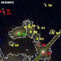 Black segments are analyzed here. Roll mouse over color images to view segments. Best viewed in a wide browser window (1200 pixels or more). Download SED & P(z) plots to view larger versions.