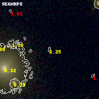 Black segments are analyzed here. Roll mouse over color images to view segments. Best viewed in a wide browser window (1200 pixels or more). Download SED & P(z) plots to view larger versions.