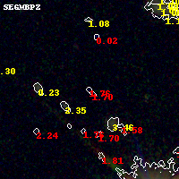 Black segments are analyzed here. Roll mouse over color images to view segments. Best viewed in a wide browser window (1200 pixels or more). Download SED & P(z) plots to view larger versions.