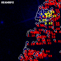 Black segments are analyzed here. Roll mouse over color images to view segments. Best viewed in a wide browser window (1200 pixels or more). Download SED & P(z) plots to view larger versions.