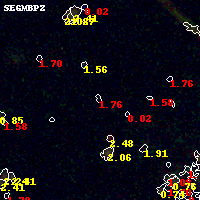 Black segments are analyzed here. Roll mouse over color images to view segments. Best viewed in a wide browser window (1200 pixels or more). Download SED & P(z) plots to view larger versions.