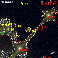 Black segments are analyzed here. Roll mouse over color images to view segments. Best viewed in a wide browser window (1200 pixels or more). Download SED & P(z) plots to view larger versions.