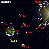 Black segments are analyzed here. Roll mouse over color images to view segments. Best viewed in a wide browser window (1200 pixels or more). Download SED & P(z) plots to view larger versions.