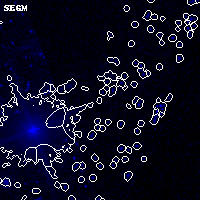 Black segments are analyzed here. Roll mouse over color images to view segments. Best viewed in a wide browser window (1200 pixels or more). Download SED & P(z) plots to view larger versions.