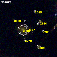 Black segments are analyzed here. Roll mouse over color images to view segments. Best viewed in a wide browser window (1200 pixels or more). Download SED & P(z) plots to view larger versions.