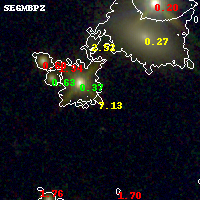 Black segments are analyzed here. Roll mouse over color images to view segments. Best viewed in a wide browser window (1200 pixels or more). Download SED & P(z) plots to view larger versions.
