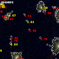 Black segments are analyzed here. Roll mouse over color images to view segments. Best viewed in a wide browser window (1200 pixels or more). Download SED & P(z) plots to view larger versions.