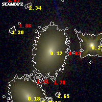 Black segments are analyzed here. Roll mouse over color images to view segments. Best viewed in a wide browser window (1200 pixels or more). Download SED & P(z) plots to view larger versions.
