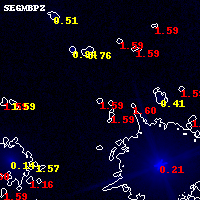 Black segments are analyzed here. Roll mouse over color images to view segments. Best viewed in a wide browser window (1200 pixels or more). Download SED & P(z) plots to view larger versions.