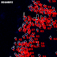 Black segments are analyzed here. Roll mouse over color images to view segments. Best viewed in a wide browser window (1200 pixels or more). Download SED & P(z) plots to view larger versions.