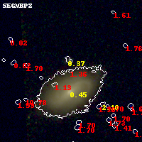 Black segments are analyzed here. Roll mouse over color images to view segments. Best viewed in a wide browser window (1200 pixels or more). Download SED & P(z) plots to view larger versions.