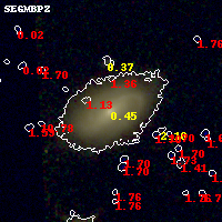 Black segments are analyzed here. Roll mouse over color images to view segments. Best viewed in a wide browser window (1200 pixels or more). Download SED & P(z) plots to view larger versions.